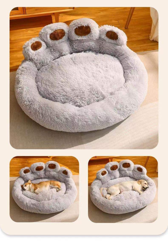 This luxurious 3D bear paw-shaped pet bed is made of long-staple cotton and PP cotton, offering exceptional softness, elasticity, and comfort. It features thickened raised edges, a non-slip and waterproof bottom, and is fully washable for convenience and practicality. Suitable for indoor and outdoor use, it ensures your pet’s durability and comfort year-round.